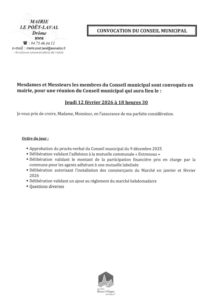 Ordre du jour Conseil municipal du 12 février 2026